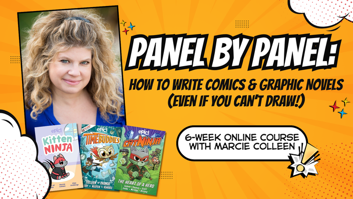 Panel by Panel: How to Write Comics & Graphic Novels (Even If You Can’t Draw!) is a live six-week, writer-focused course that demystifies comics and graphic novels, giving you the tools and confidence to write visually compelling stories for young readers.